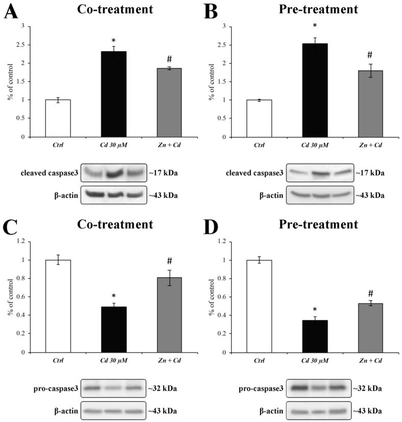 Cadmium (Cd) is a well-known occupational and environmental pollutant worldwide, and its toxicity is widely recognised. Cd is reported to increase the permeability of the blood–brain barrier (BBB) and to penetrate and accumulate in the brain. Although many lines of evidence show that Cd toxicity is induced by different mechanisms, one of the best known is the Cd-dependent production of reactive oxygen species (ROS). Zinc is a trace element known as coenzyme and cofactor for many antioxidant proteins, such as metallothioneins and superoxide dismutase enzymes. To date, very little is known about the role of Zn in preventing Cd-induced blood–brain barrier (BBB) alterations. The goal of this study was to test the Zn antioxidant capacity against Cd-dependent alterations in a rat brain endothelial cell line (RBE4), as an in vitro model for BBB. In order to mimic acute Cd poisoning, RBE4 cells were treated with CdCl2 30 µM for 24 h. The protective role of ZnCl2 (50 µM) was revealed by evaluating the cell viability, reactive oxygen species (ROS) quantification, cytochrome C distribution, and the superoxide dismutase (SOD) protein activity. Additionally, the effectiveness of Zn in counteracting the Cd-induced damage was investigated by evaluating the expression levels of proteins already known to be involved in the Cd signalling pathway, such as GRP78 (an endoplasmic reticulum (ER) stress protein), caspase3 pro- and cleaved forms, and BAX. Finally, we evaluated if Zn was able to attenuate the alterations of zonula occludens-1 (ZO-1), one of the tight-junction (TJ) proteins involved in the formation of the BBB. Our data clearly demonstrate that Zn, by protecting from the SOD activity impairment induced by Cd, is able to prevent the triggering of the Cd-dependent signalling pathway that leads to ZO-1 dislocation and downregulation, and BBB damage.